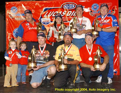 The sportsman winners at the Auto Club Finals celebrate on the podium. In