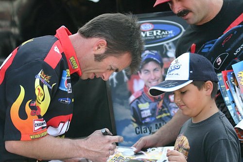 Clay Millican enjoyed "working the crowd" in the pits Sunday at Pomona, but probably did not enjoy getting spanked by Cory McClenathan in their first-round matchup.