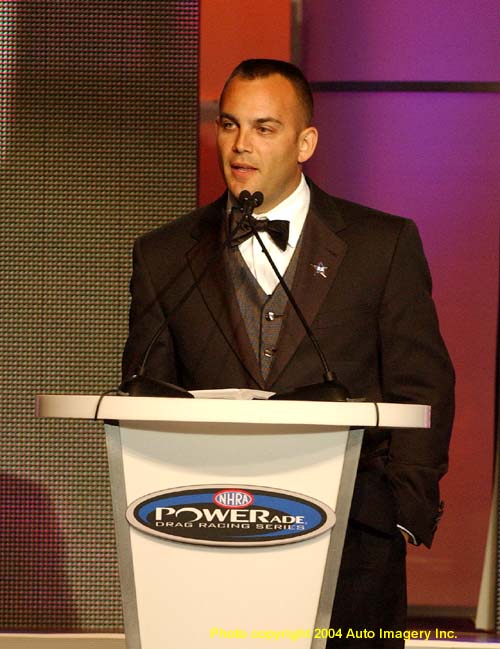 Tony Schumacher accepted his check and trophy for winning the 2004 POWERade