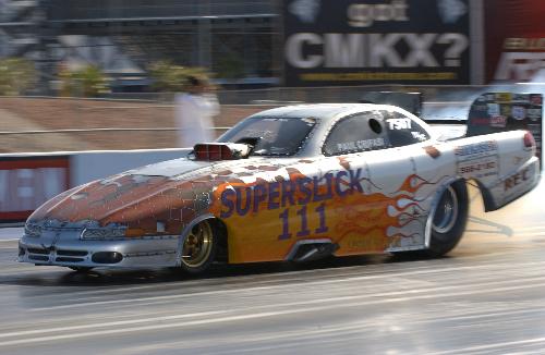 Paul Crifasi from Las Vegas was testing his '02 Dodge Avenger in Top Alcohol Funny Car.