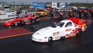 It's not because of Tim Horton's donuts or Molson's Golden Ale. It's probably not even the loonies and twoonies that Canadians carry instead of dollar bills. The real reason Creasy likes Canada is because he won the IHRA Knoll Gas-Torco Racing Fuels Pro Nitro Funny Car championship in 2006 on the strength of three national event wins and all those wins came north of the border. The first win came in Grand Bend, Ontario, the second in Edmonton, Alberta and the third in the rain-delayed IHRA Canadian Nationals at Toronto Motorsports Park in Cayuga, Ontario. "We are undefeated in Canada," Creasy said of his three wins. "We even ran a match race at Grand Bend (against Jack Wyatt) and we won all the rounds." Creasy, the son of longtime Funny Car owner Dale Creasy, Sr., got his first win of the season with a final-round victory over Bob Gilbertson in Grand Bend, an event he described as one of the highlights of his season because of the number of firsts it contained. "It was the first time I ever qualified with the low ET," Creasy said. "It was the first time I had a bye in the first round. It was the first final round. And it was the first win. It was a lot of firsts."